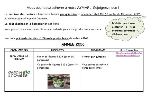 Depuis 2021, une AMAP a été créée au collège Marcel Aymé à Dagneux.